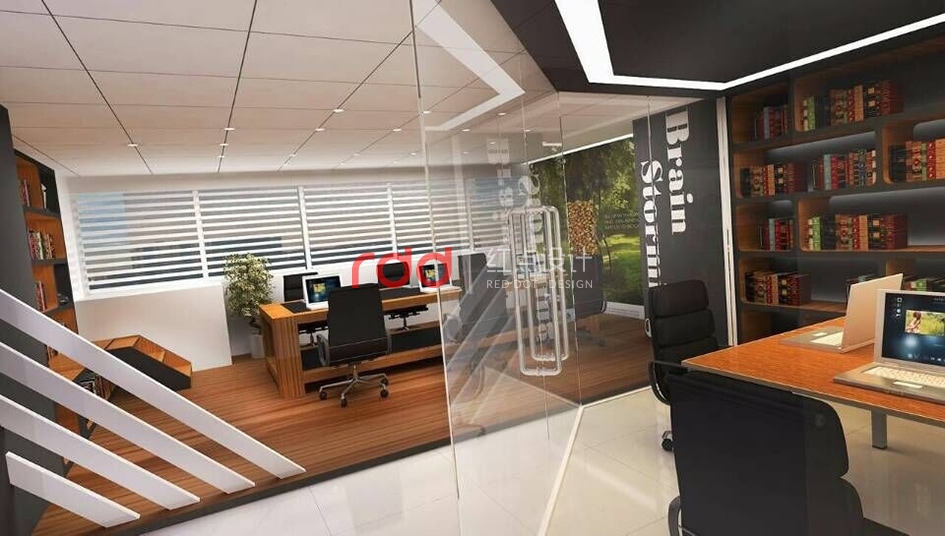 本項目設計師以原木色及深灰色及主調,在空間的區分上以到頂柜子及透明鋼化玻璃為隔斷,通過這樣的手法營造不一樣的空間,同時也通過虛擬的圍合達到一種半私密的獨享空間。