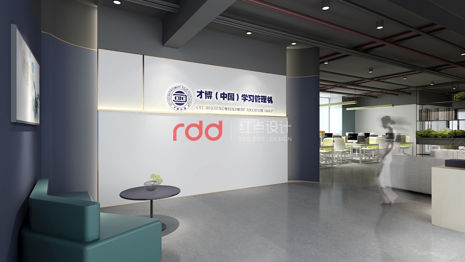才博(中國)學習管理機構是才卓企業咨詢有限公司旗下的分支,改管理機構以教育為主,因此,在形象墻的設計上,紅點裝飾的設計師把形象墻設計成打開的書本形狀。寶藍色的logo字,在白灰的墻上更醒目顯眼。