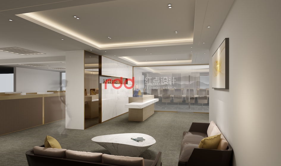 天譽橋梁設計公司是一家專注于橋梁設計的專業公司,結構沉穩大氣是橋梁的特點之一,因此在該公司的辦公室設計上,紅點裝飾設計的設計師運用爵士白大理石、玫瑰金與茶鏡的設計,讓整個前臺背景的沉穩多了幾分輕盈。