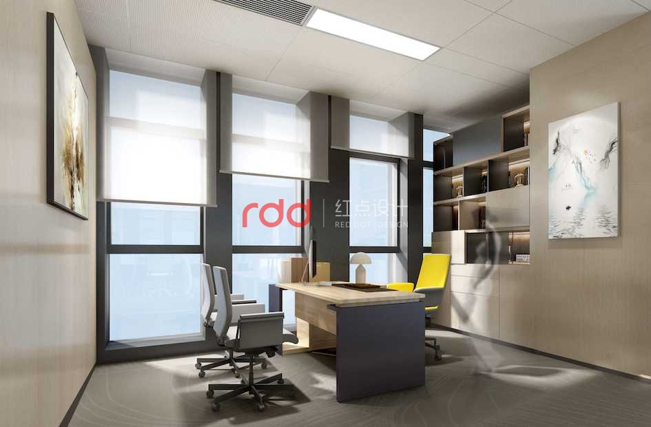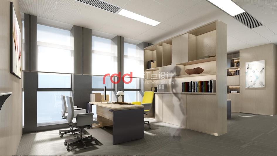 為了滿足節省空間的需求,經理區采用柜子間隔的形式。
