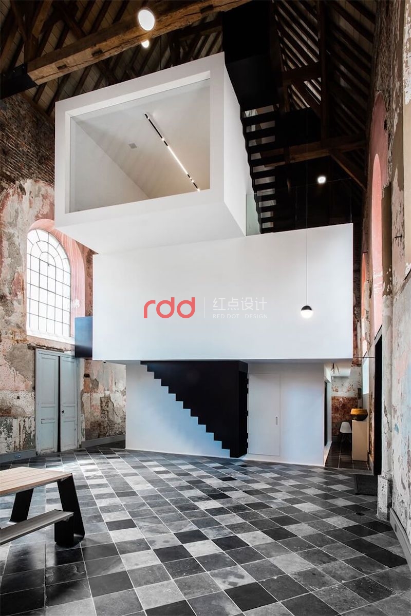 由于該教堂是重點保護建筑,整個改造工程也就受到了一些限制。為了保護教堂原來的古老建筑,Klaarchitectuur 在其中小心翼翼地重新搭建了一個全新的建筑結構,完全獨立于原來歷史悠久的建筑之外。新搭建的建筑與古老的教堂形成鮮明對比。在新建筑的映襯之下,教堂的歷史性依然清晰可見。