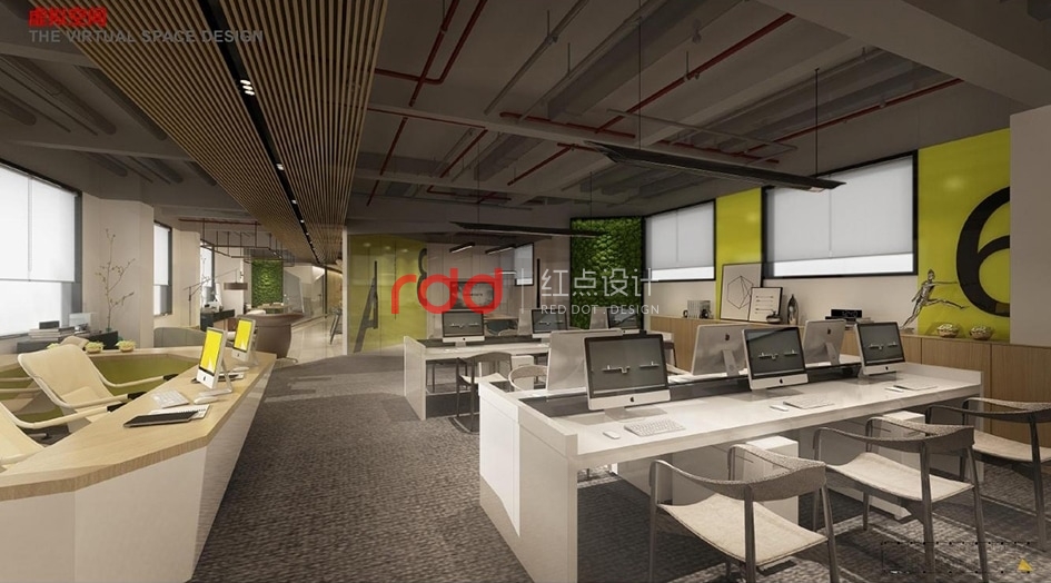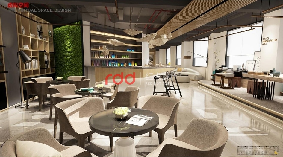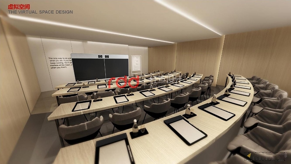 學校是學生開拓創新、汲取知識的海洋。在這樣即嚴謹又自由開放的空間里,需要一個有品質、有格調、舒服的辦公空間。設計師運用了工業風與現代風格結合在一起,以深灰色的裸頂拉伸了空間的高度,配以燈光效果及木飾面的墻身,讓整個空間更寬敞明亮。菱角分明的背景墻及咖啡吧臺的設計給整個柔和的空間增添了幾分硬朗及豪邁的氣勢。